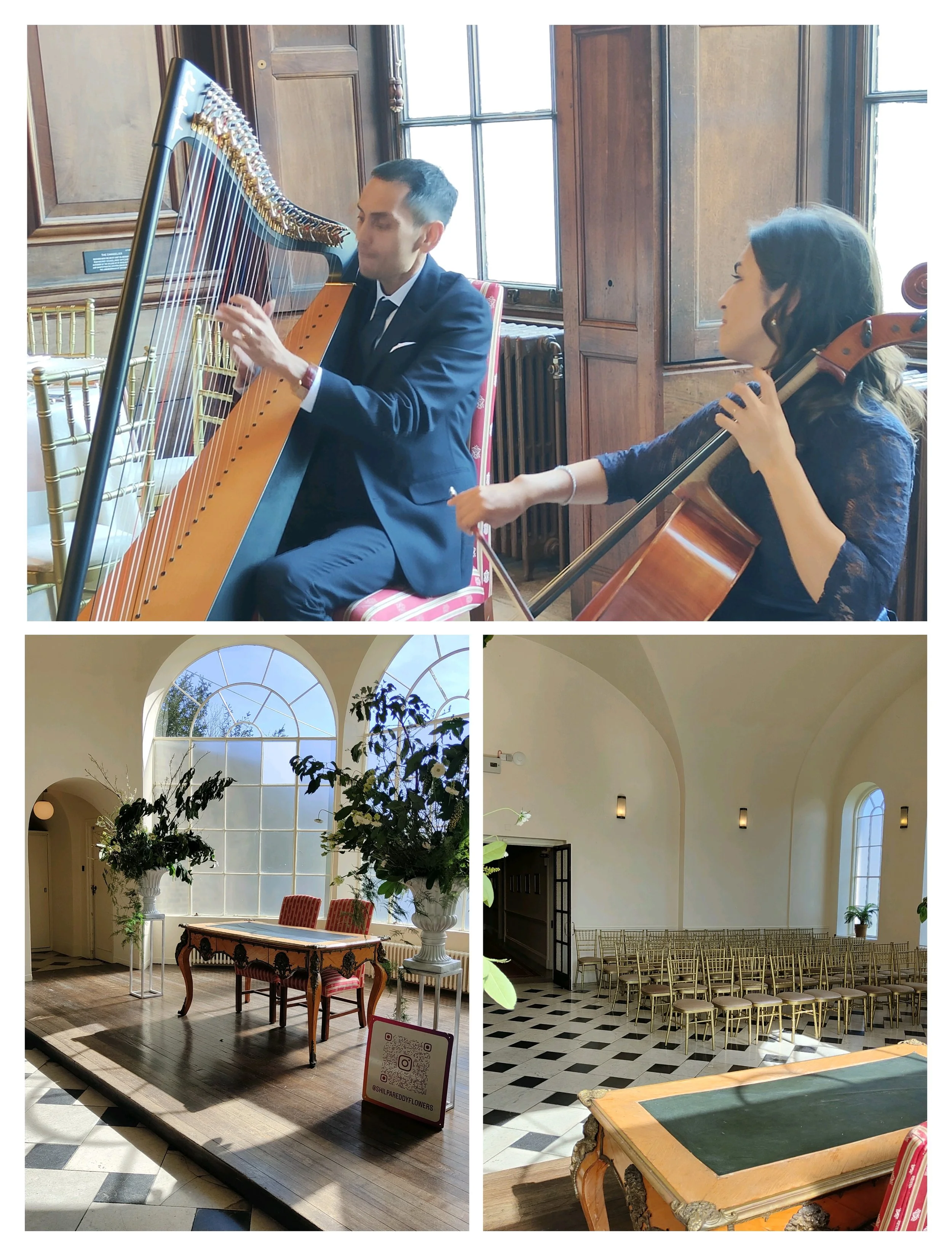 Music by harp and cello duo couple MAV DUO added to the romance of a beautiful setting