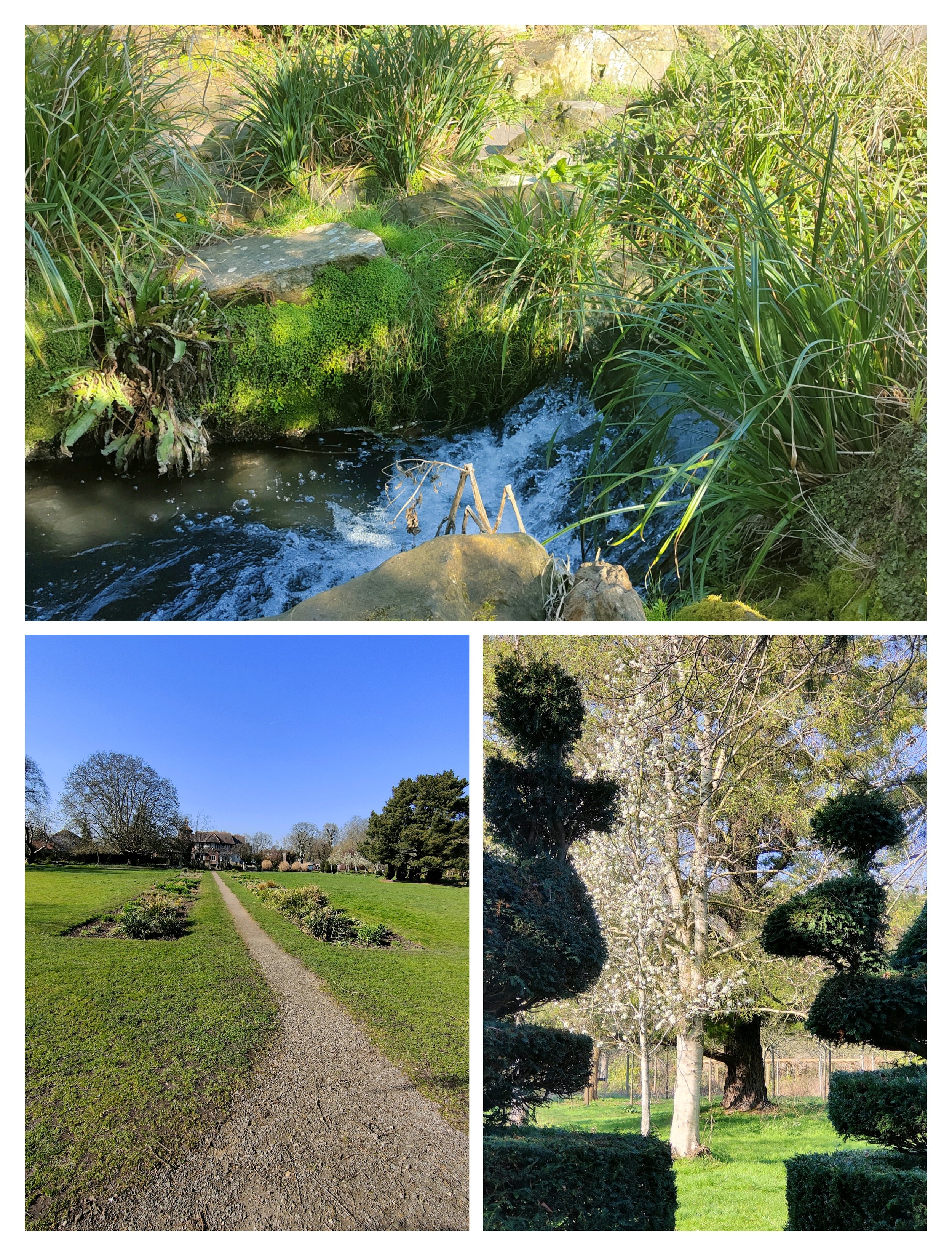 On a beautiful spring day the river Wandle breaks up here into tiny streams and the manicured hedges make great photo opportunities.